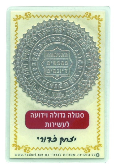 קרא עודקמיע בגודל כרטיס אשראי, עשוי כסף טהור ובו מוצפנים שמות קודש ע"פ ספרי הסוד של הרב
